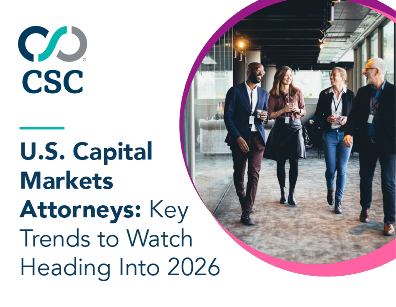 CSC’s latest eBook, U.S. Capital Markets Attorneys: Key Trends to Watch Heading Into 2026, explores four critical areas shaping the year ahead: