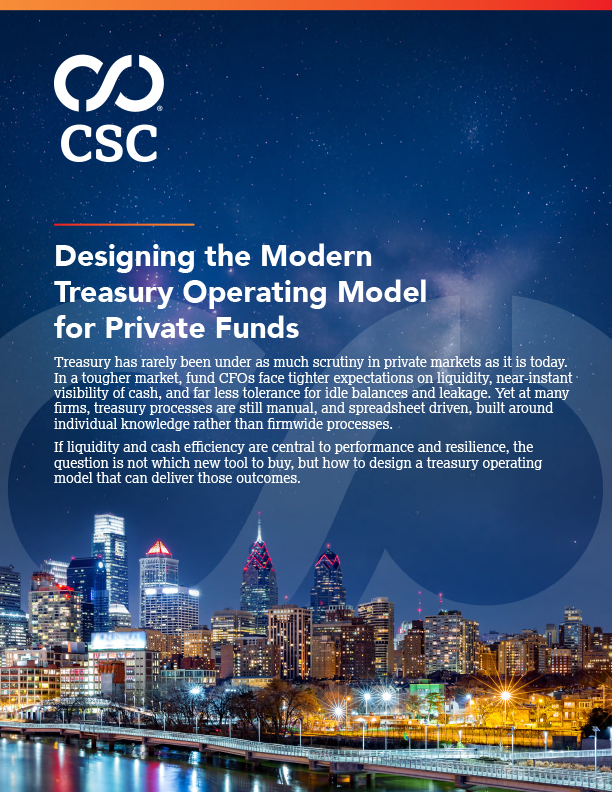 In a market where liquidity discipline is a competitive advantage, many private fund managers are still relying on manual, fragmented treasury processes. Drawing on insights from our experts, and featured in Private Funds CFO, this paper outlines how CFOs can design a modern treasury operating model built around forward-looking liquidity, cash efficiency, and strong governance to support performance, resilience, and better investment decisions.